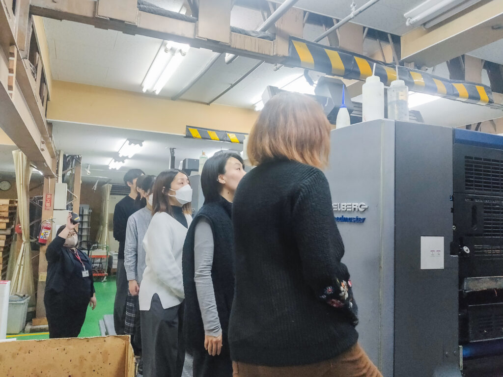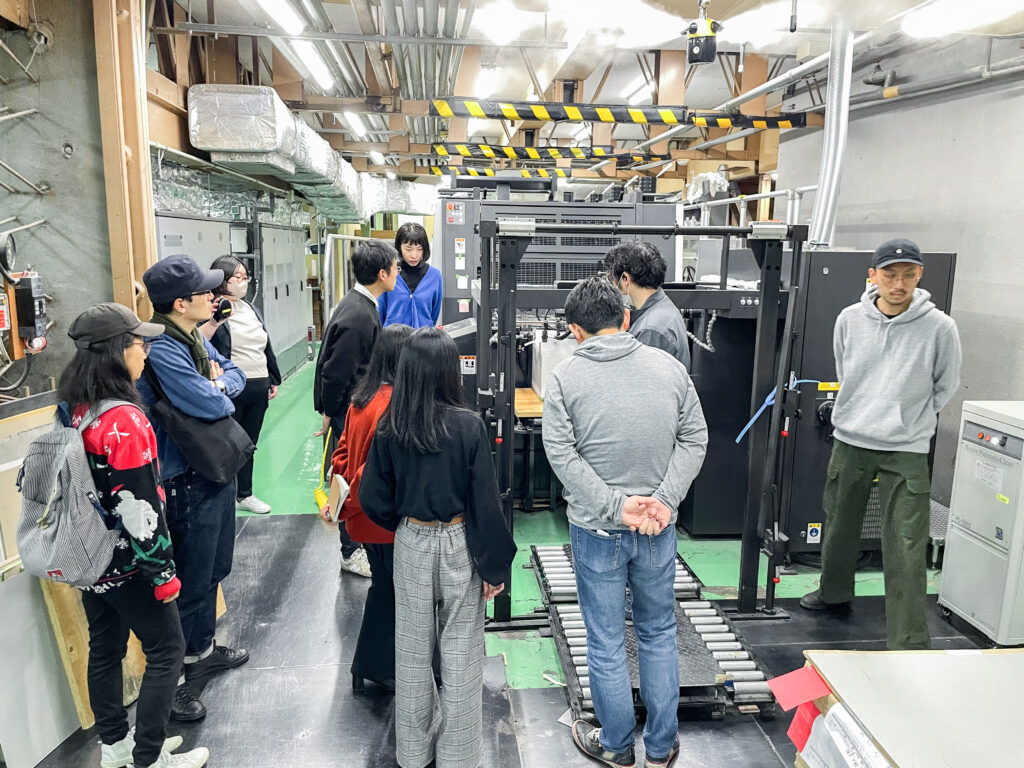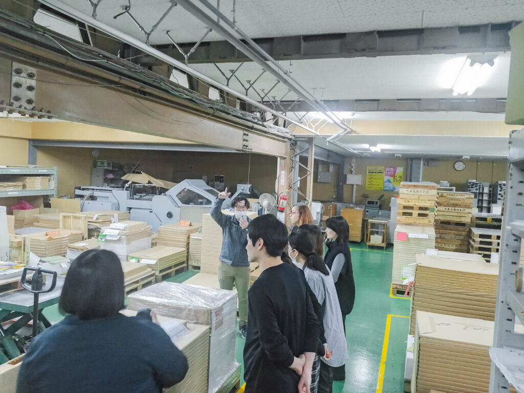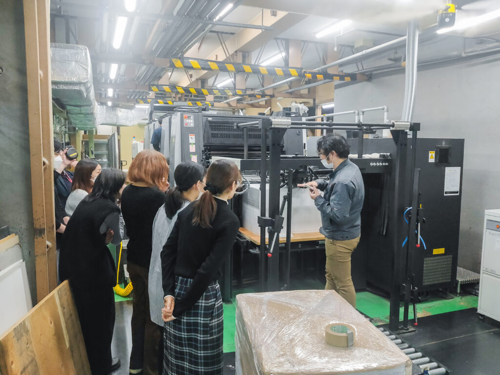 2)工場見学(断裁機、油性オフセット印刷機、LED-UVオフセット印刷機)