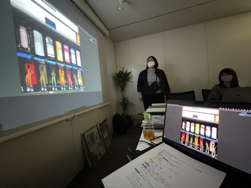 こちらでもオンラインで広島と東京をつないでデジタルオフセット印刷機の機体説明とデモンストレーションです。ほんと便利な時代になったものです。