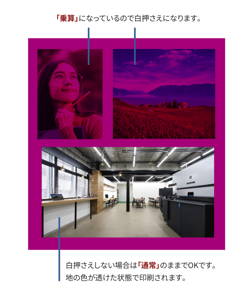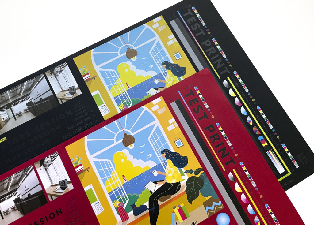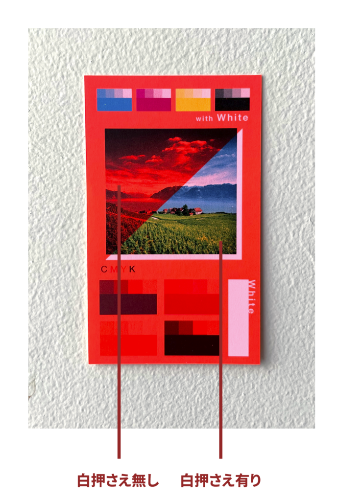 ホワイトインキの使用は必須ではありませんが、色紙への印刷はホワイトインキを使用(白押さえ)をしなければ地色が透けた仕上がりになります。