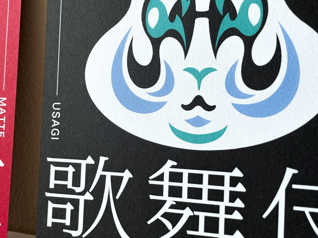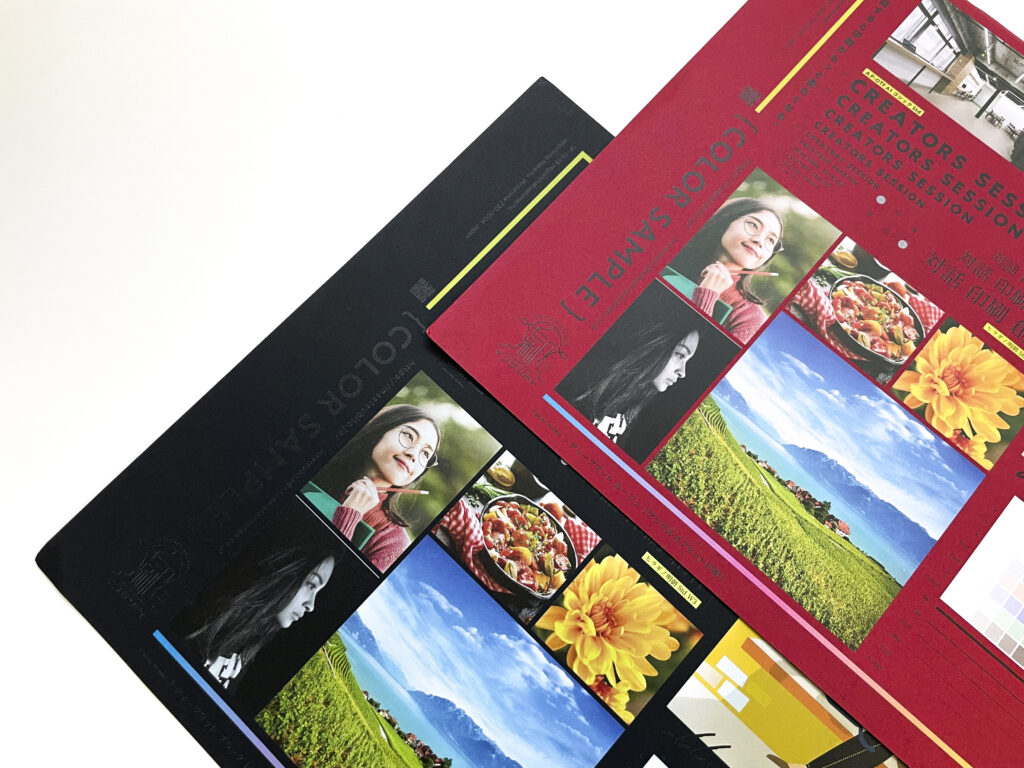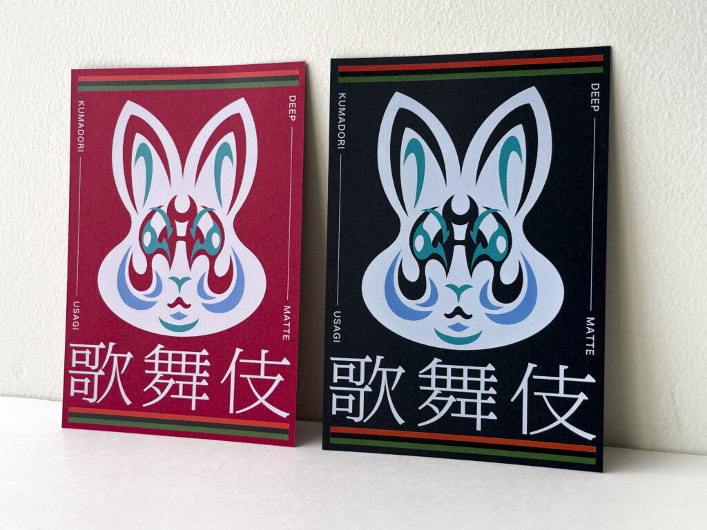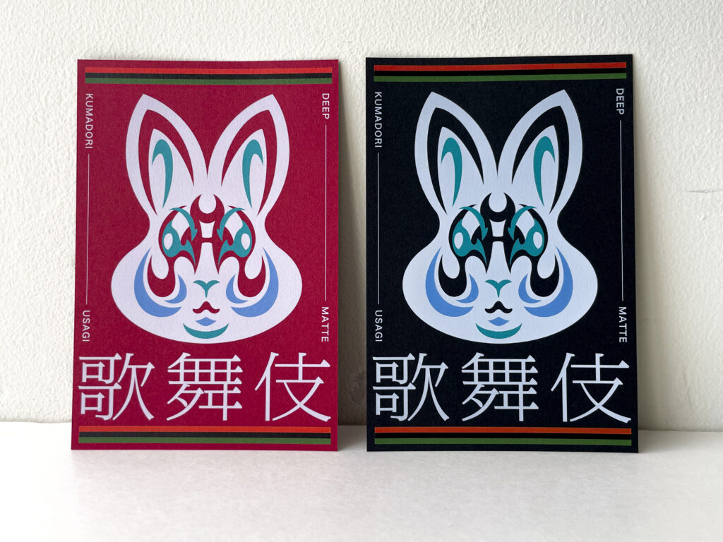 事前にデータをご入稿していただいたものに、当日現場でディープマット ルージュディープマット ブラックへ目の前で印刷!断裁して仕上げた赤と黒のポストカードをその場でお持ち帰りすることができます。