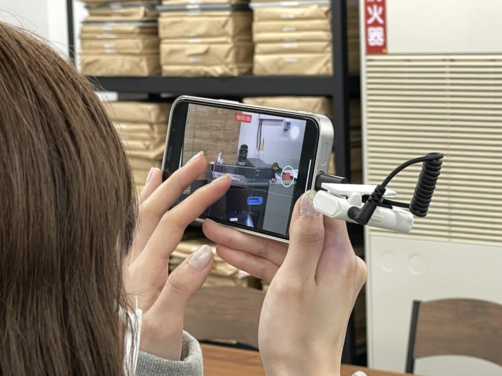 スチル撮影だけではなく、動画も同時撮影!そしてiPhoneの端子についているのはBluetoothピンマイクと連動して録音できるとのこと!こんなのあるなんて知らなかったです、、、