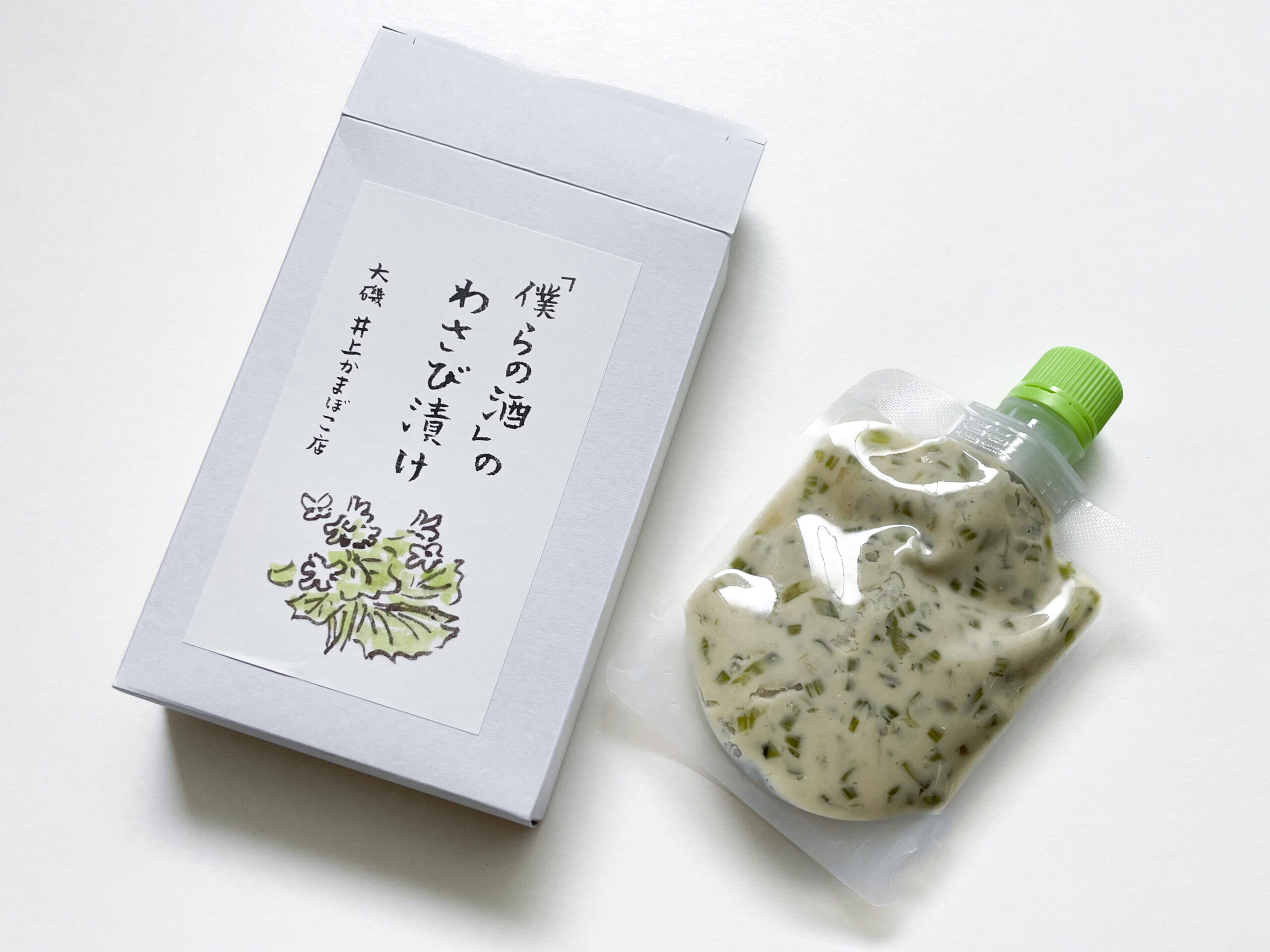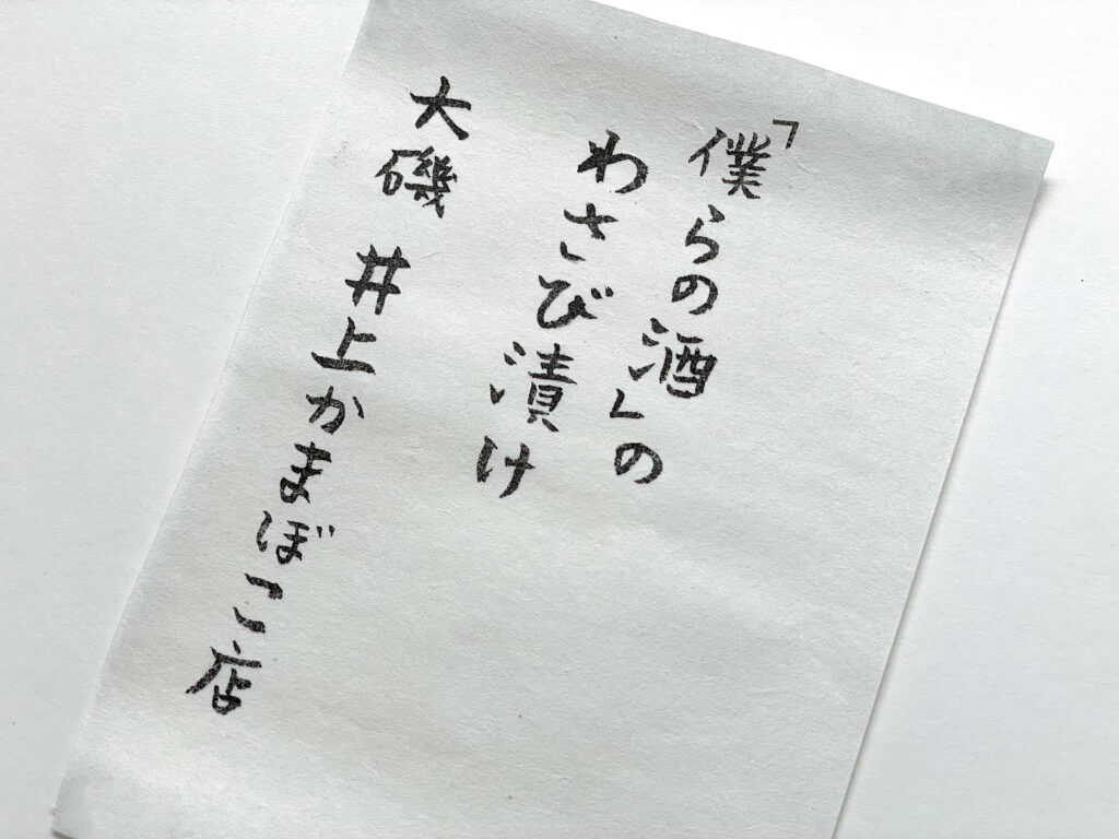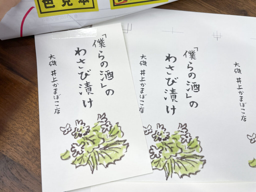 大磯 井上かまぼこ店「僕らの酒」のわさび漬け包装紙・商品シール
