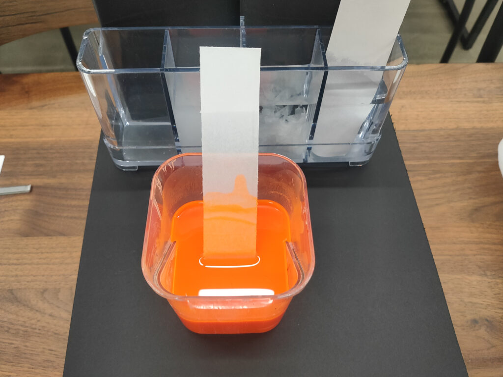では、せっかくなので本当に水溶紙(溶ける紙 水)が液体トナーに溶けないのか見てみましょう。