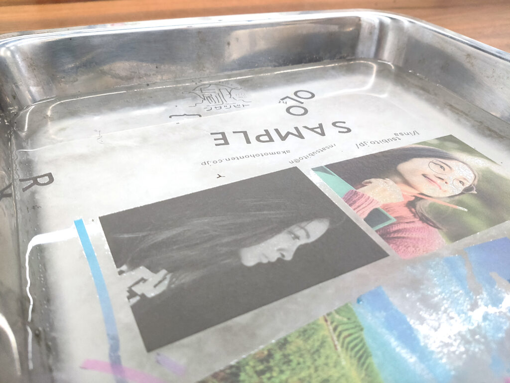 水溶紙(溶ける紙 水)は液体トナーを採用しているHP Indigo7Kで問題なく印刷することができました。