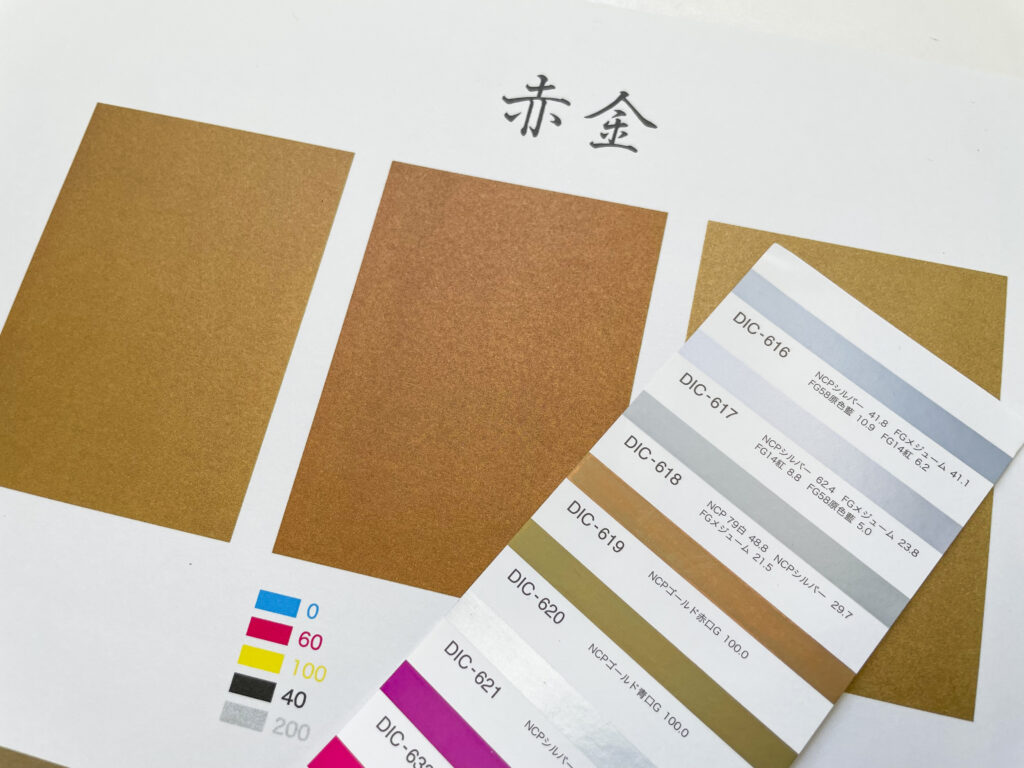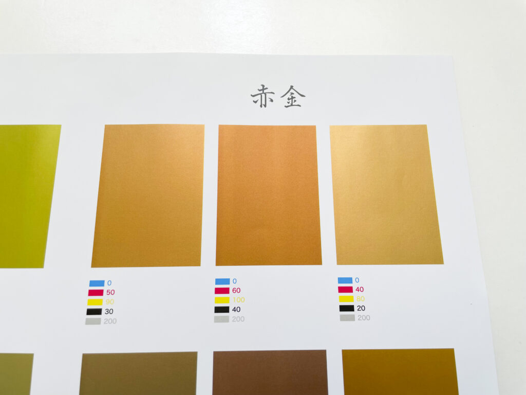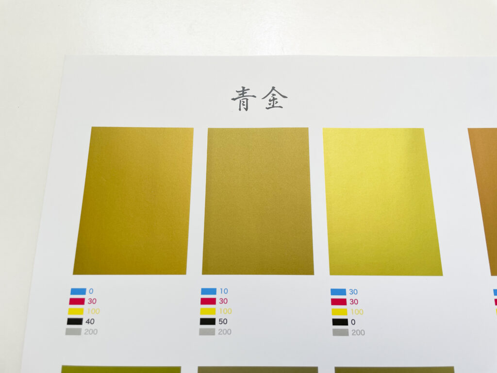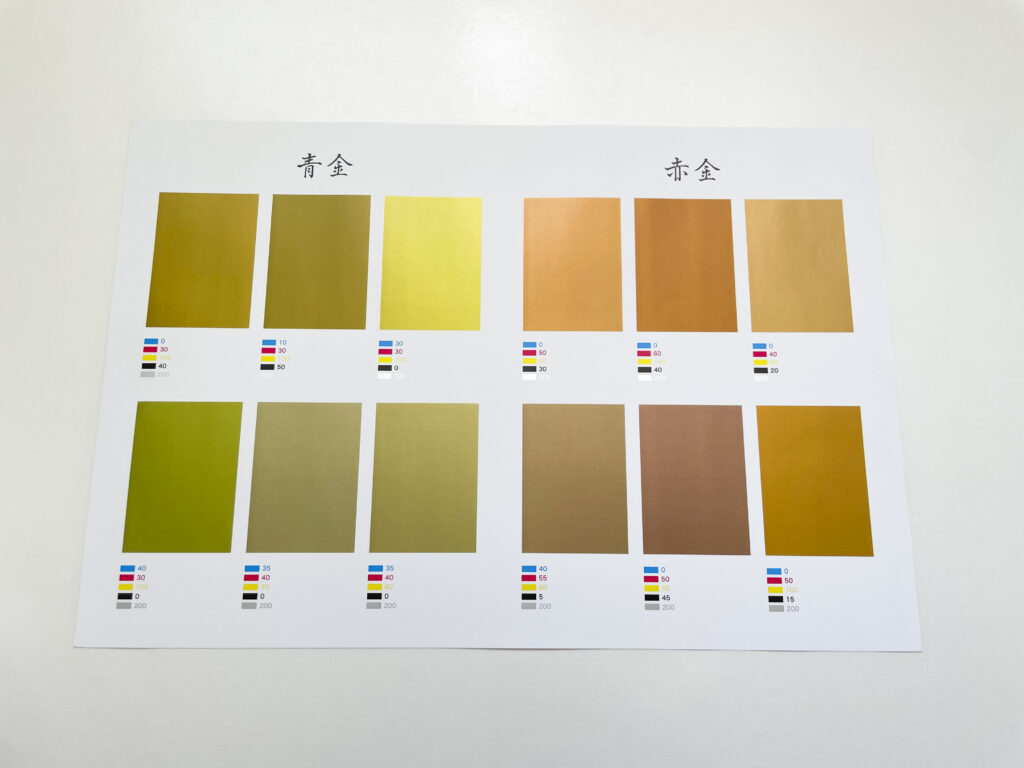 いかがだったでしょうか?好みのゴールドが作れるデジタルオフセット印刷機ですが、今回はあえて定番の青金と赤金を再現してみました。これもまた面白い実験結果となりました。