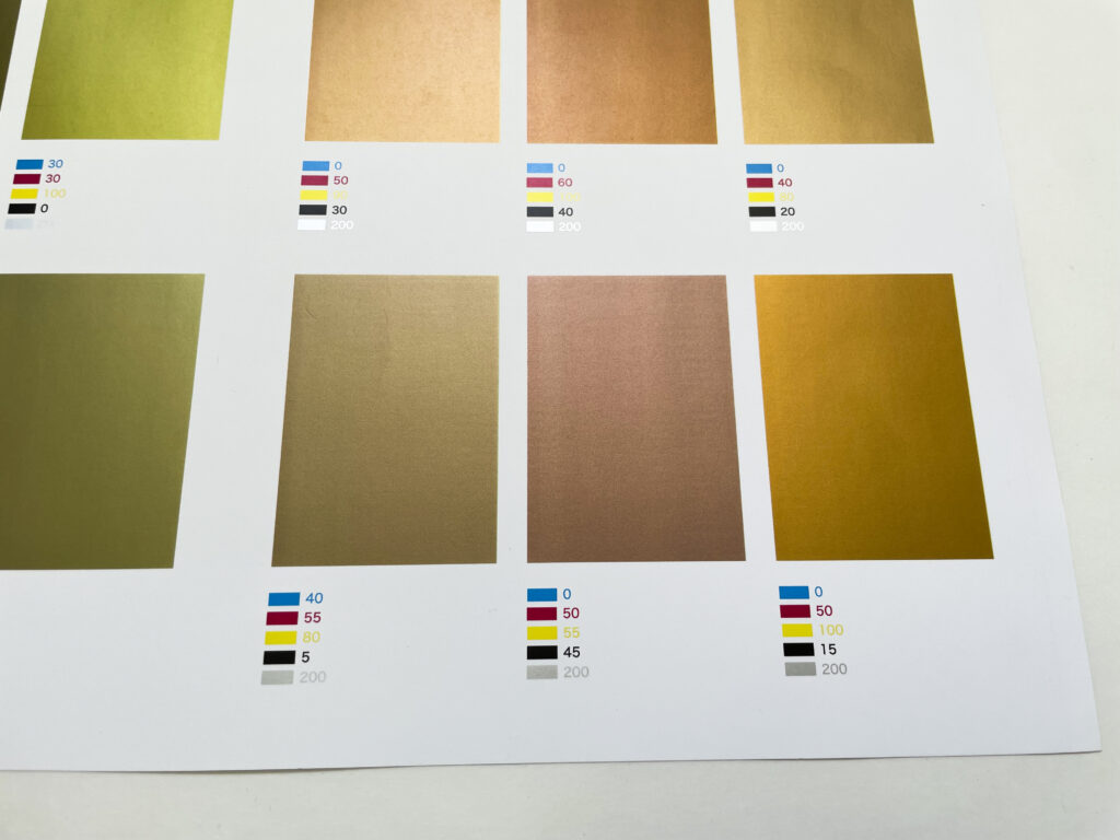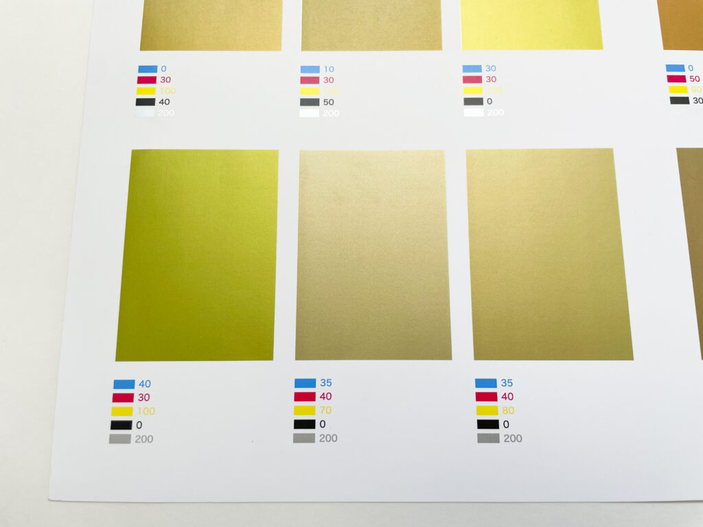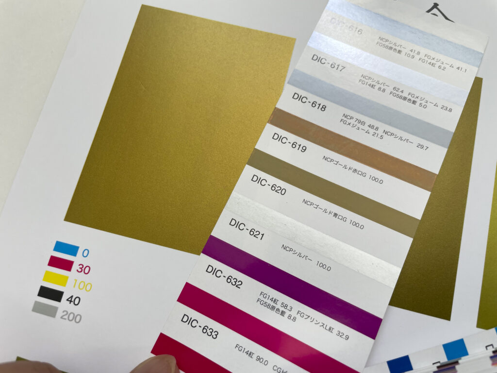 デジタルオフセット印刷機でいわゆる青金・赤金を表現するにはCMYKの最適数値は何%?
