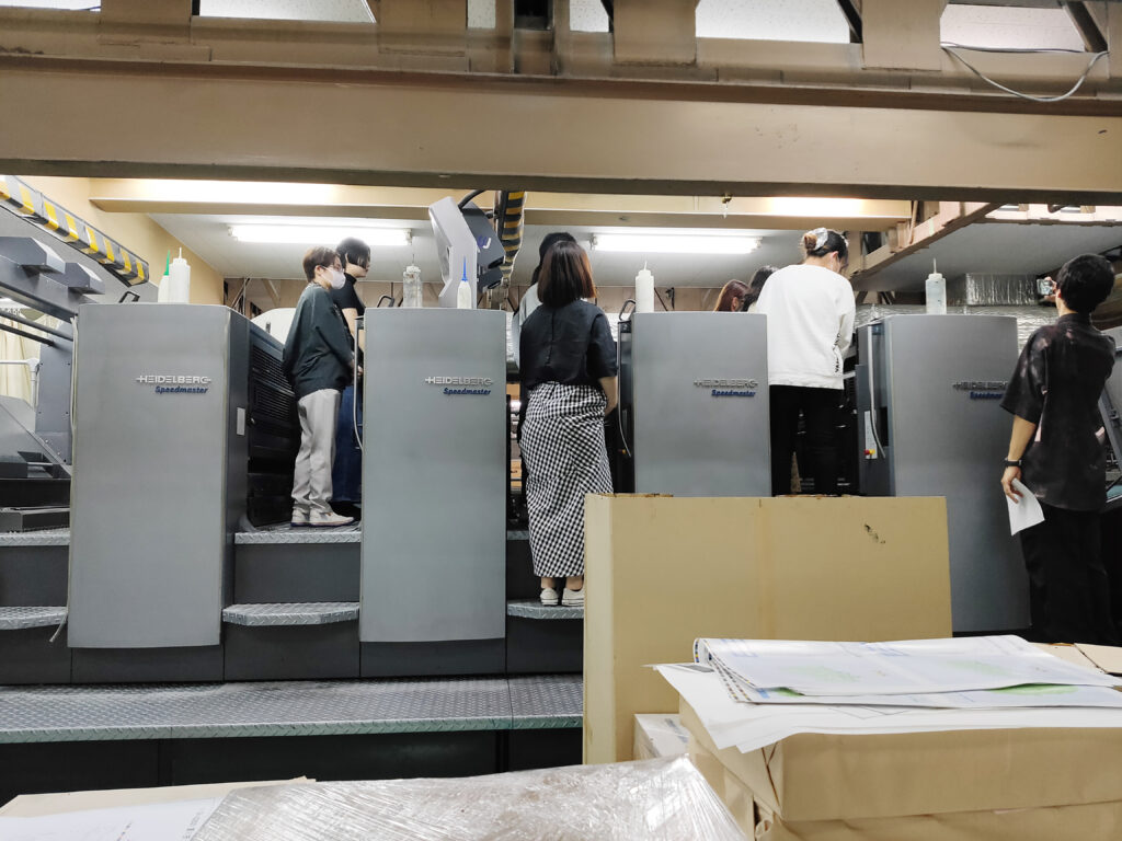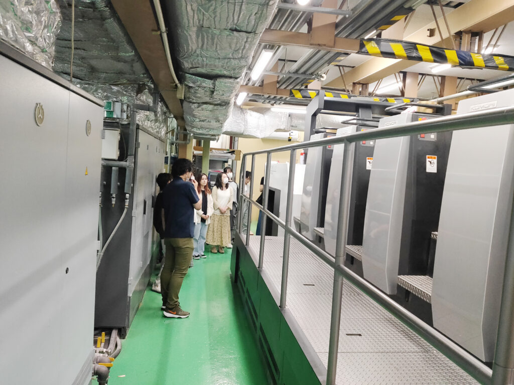 2)工場見学(油性オフセット印刷機、LED-UVオフセット印刷機)