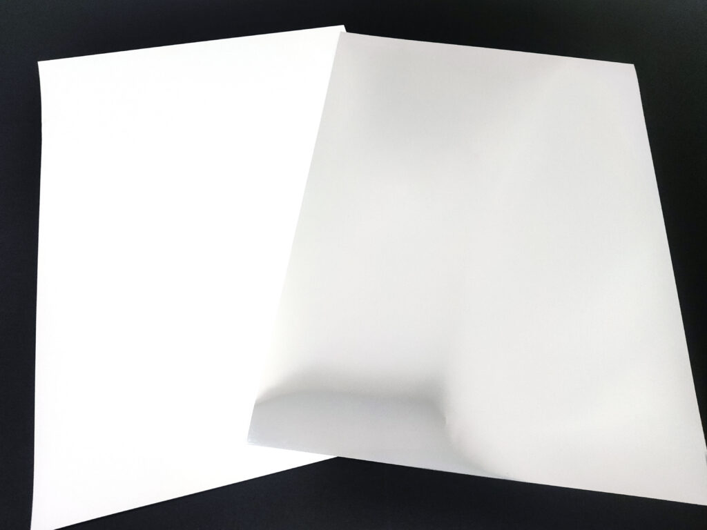 今回の研究レポートはユポのメタリック用紙を使った実験です。合成紙で知られているユポにも『メタリックユポ WMF 120』というメタリック調の用紙がありますので紹介していきます。ユポの片面を金属調光沢に加工された用紙です。