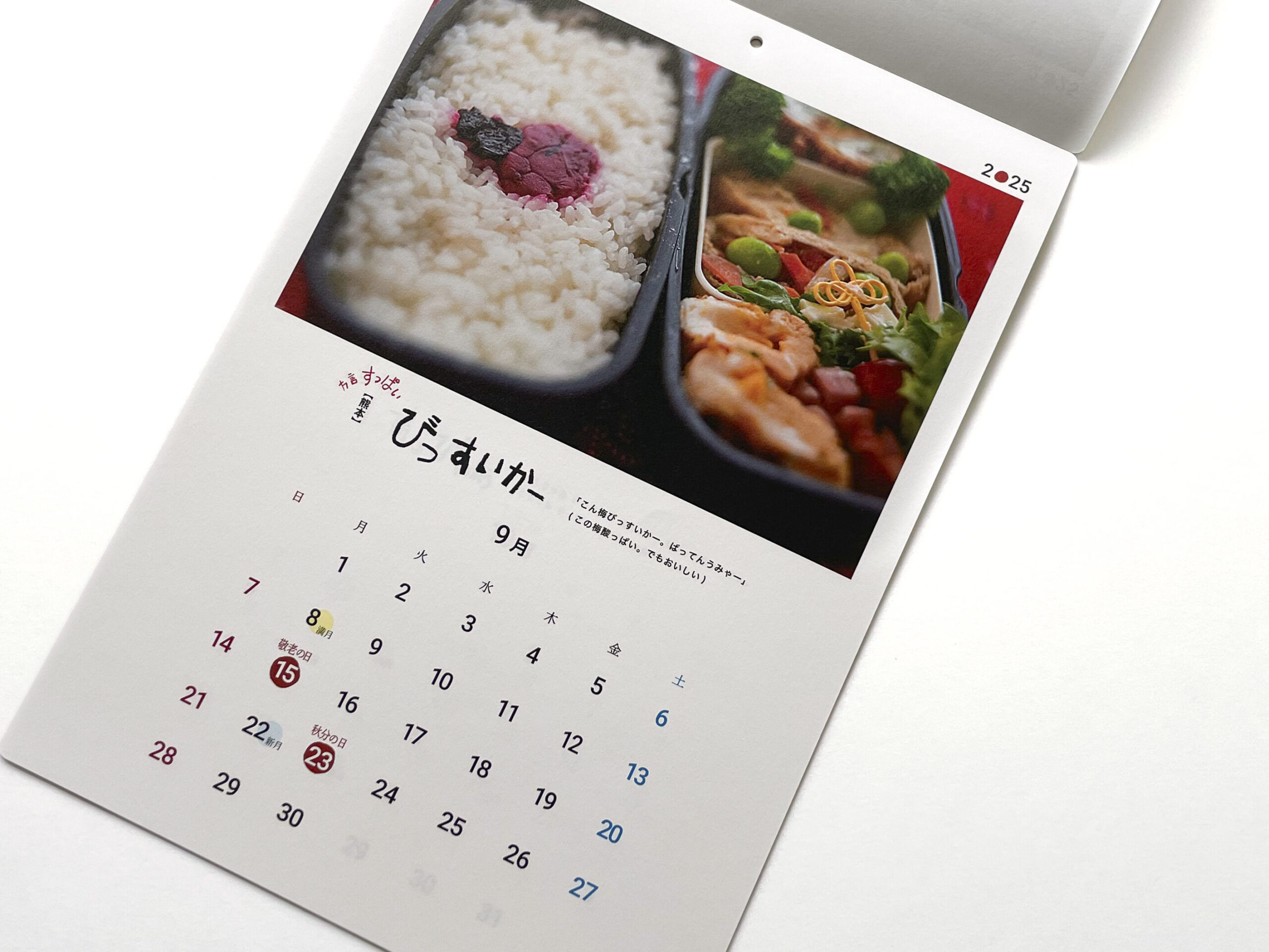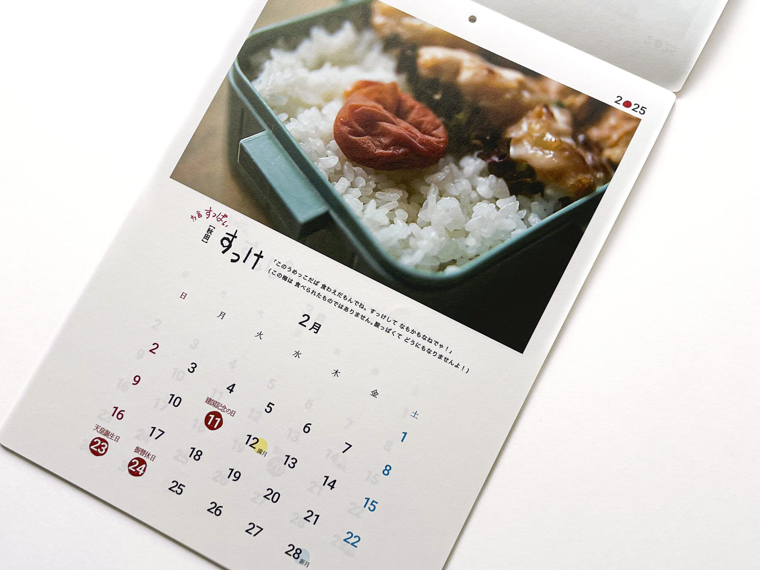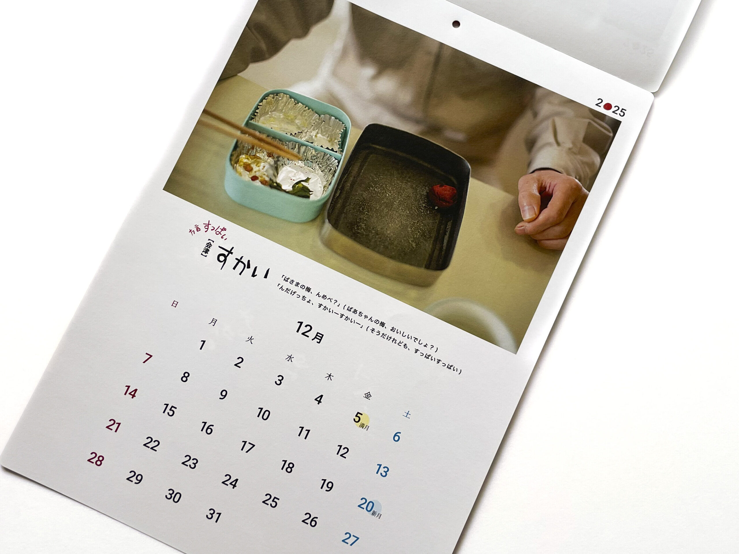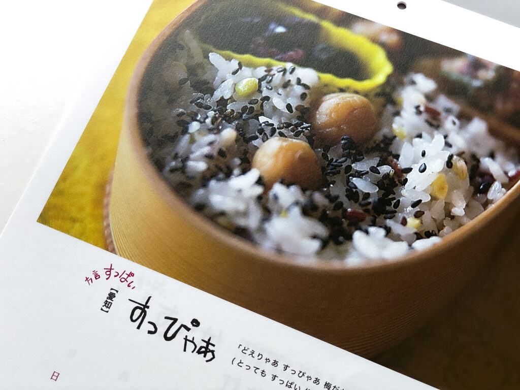 そしてご相談の新規カレンダーの発行元は、なんとANAの機内誌「翼の王国」内で「おべんとうの時間」の連載や、NHKのお昼の番組「サラメシ」内でお弁当ハンターとしてもご出演されている阿部了さんでした!僕もずっと番組を見ていてイチファンでもあります!!梅干し入りのお弁当の「すっぱい」をテーマに全国各地の「すっぱい」の方言と共にお弁当を紹介する内容です。なんともお腹が空くカレンダーですね。