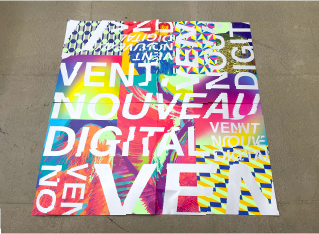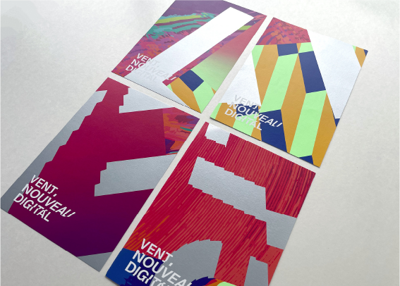デジタル印刷専用のヴァンヌーボシリーズの展示会を告知するDMのデザイン手法として、Indigo 7K独自の「モザイク可変印刷」機能を用いて印刷しました。