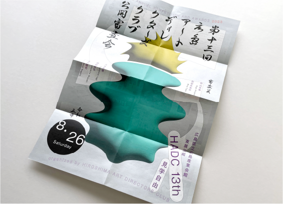 広島では年1回、県内のデザイン作品の公開審査会開催しています。その開催と作品募集告知DMと封筒の印刷を担当させていただきました。背景のシルバーが強烈なポイントとなっています。